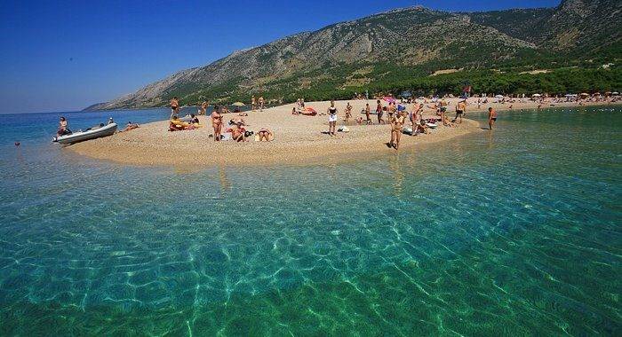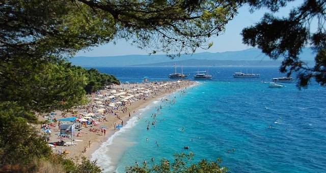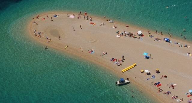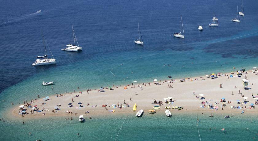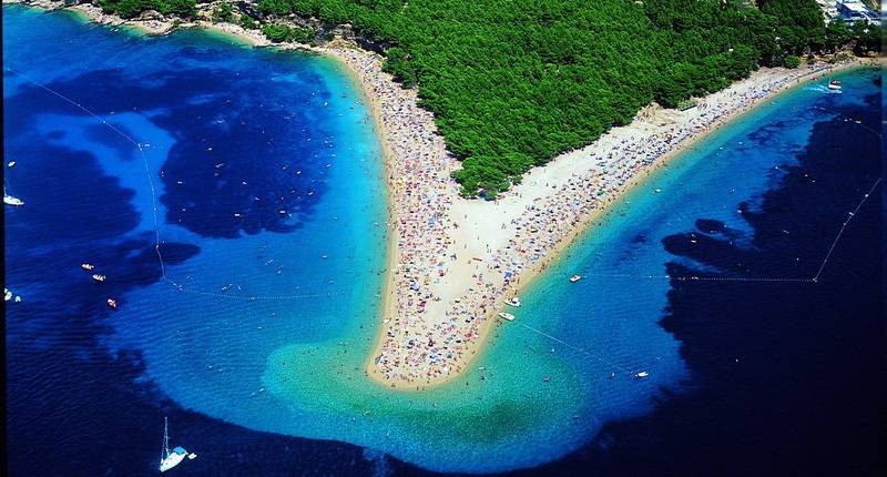 Zlatni rat (Goldenes Horn) ist einer der Top 10 der schönsten Strände der Welt. Wie eine Zunge räkeln er sich über 500 m auf das klare blaue Meer zu. Milde Strömungen und Winde bewegt sich die Spitze der "Zunge" verführerisch links und rechts. Ein einzigartiges geologisches Phänomen von vor 1 Millionen Jahren.