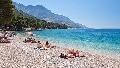 Uno spettacolo meraviglioso, il monumento naturale "Kamen Brela" - il marchio di questa perla del mare Adriatico, una piccola isola di roccia – Kamen, sentita in mare forse dal monte Biokovo - parco naturale, una parte della splendida spiaggia di Punta Rata.