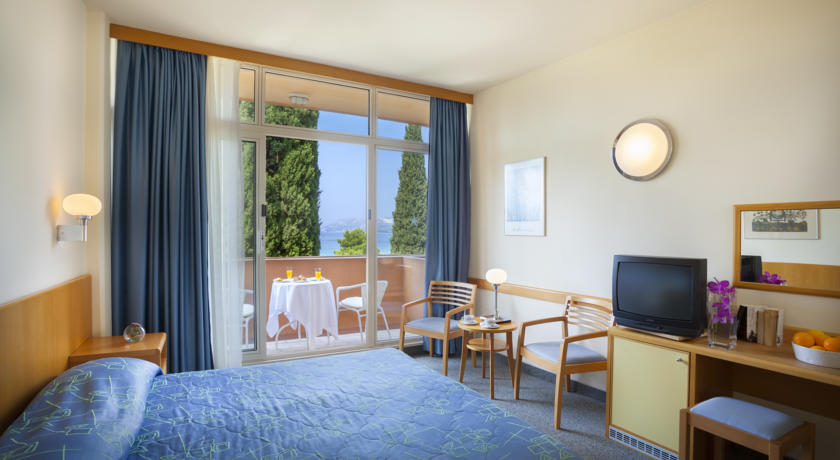 Wir haben Corner Suite genommen, sehr sauber, mit Blick auf den wunderschönen Adriatischen Meer mit großen Patio/Terrasse. Das Hotel hat ein schönes Schwimmbad, aber es ist überfüllt mit Stühlen.