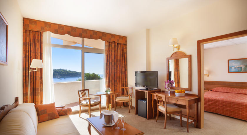 Abbiamo suite d'angolo, molto pulito, con vista splendida sul mare Adriatico con ampio patio / terrazza. Hotel dispone di bella piscina, ma è sovraffollato con sedie.
