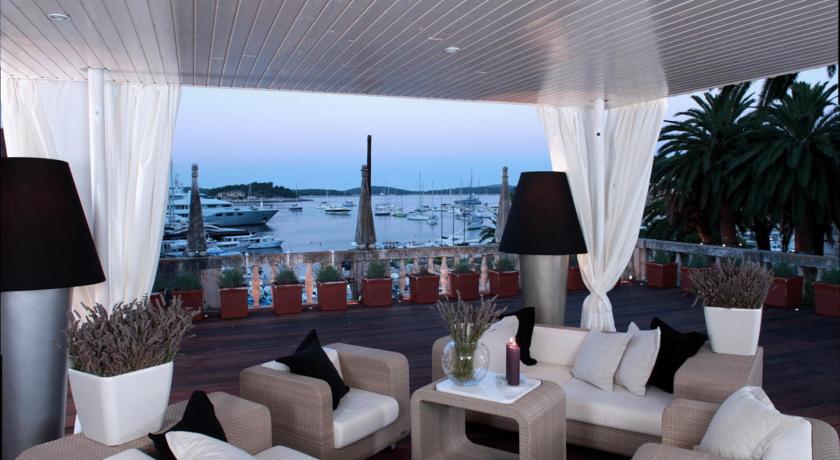 Il personale alla reception era molto gentile. La colazione era buona, è bello avere una vista e l'hotel sembra attraente dalla strada. Hvar ha molto carattere e di fronte all'hotel si adatta. Tuttavia, una volta dentro, si sente come studente hall del residence. Un arredamento che rende sensazione di sporco, l'aria condizionata, piccolo balcone, camera piccola (e che abbiamo pagato per l'aggiornamento a una camera superior!). È possibile appena sedere due persone sul balcone e ci sono segni intorno all'hotel che ti chiede di non lasciare nulla al asciugare sul balcone come 'rovina il look'. Hvar è affollato e rumoroso (è davvero divertente), ma anche con le finestre chiuse si sente tutto il rumore esterno intorno all'hotel. Siamo stati anche sull'isola di Brac durante il nostro soggiorno per 1/3 del prezzo di questo hotel in una camera molto più moderna e spaziosa.
