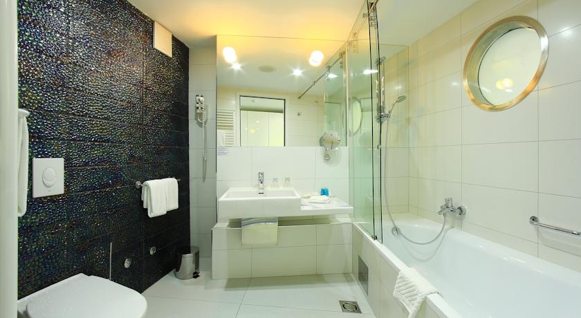We liked the room, which was good size, and the location, which was close to the Riva and Castle. There is a drape so you do not have to watch someone in the bath room. The breakfast area was a bit cramped.