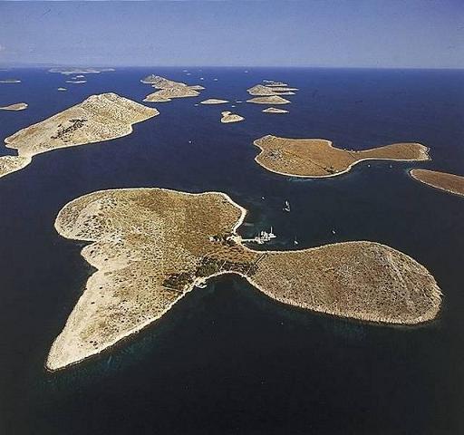 Kornaten (Kornati) die größte und dichteste Inselgruppe von 89 Inseln, Inselchen und Riffen mit einer Gesamtfläche von 69 qkm in der Adria, auf einer Fläche von 220 qkm, 35 km lang und 13 km breit, zwischen den Inseln verstreut: Dugi Otok (NW) und Zirje (SO), Pasman (N).