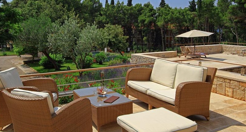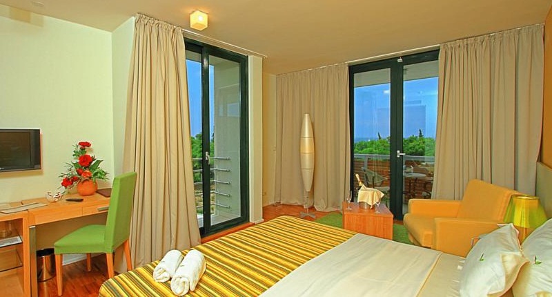 Das Meer ist sichtbar durch die Bäume, die auch viel Schatten machen von der Hitze der Mittagssonne. Das Meer ist wunderbar sauber und klar, noch nie erlebt, dass so ein azurblaues Meer, und wir wurden darauf hingewiesen, dass die Temperaturen im Sommer sind etwas wärmer als sonst und das Meer war herrlich warm. Der Speisesaal ist in einem eigenen Bereich, viel frisches Obst, Salat, hausgemachtem Brot und hausgemachte Speisen, Salat und Pizza Ofen im Einsatz jeden Abend die frische leckere Pizza.