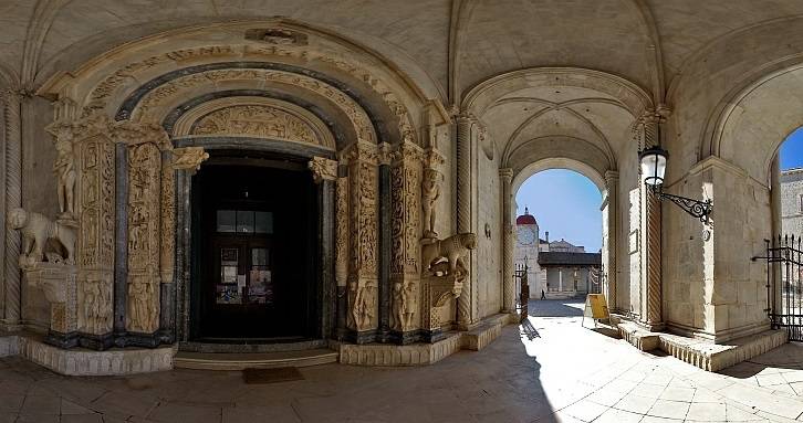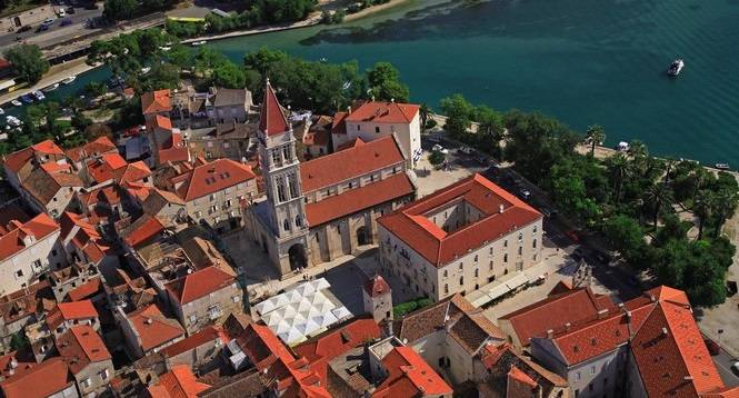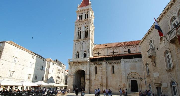 Kathedrale San Lorenzo ist eine romanisch-gotische Basilika mit dem berühmten Portal des Bildhauers Radovan, einer unschätzbare Sammlung in der Kapelle des Hl. Johannes von Trogir, einer gotischen Kirchenglocke und der Glockenturm ist einer der schönsten am Mittelmeer.